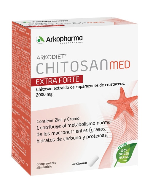 Tomar 2 cápsulas de Chitosán Extra Forte en la comida y 2 cápsulas en la cena.